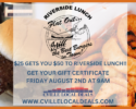 With Cville Local Deals $25 gets you $50 at Riverside Lunch! Get your gift certificate Friday, August 2nd at 9am!