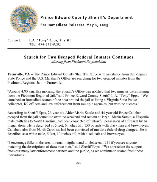 There word now by The Farmville Herald that Alder Marin-Sotelo’s sister has been arrested and charged with aiding the escape after allegedly purchasing a stolen Ford Mustang in High Point, NC, then driving the getaway car after picking up her brother in the Virginia jail parking lot.